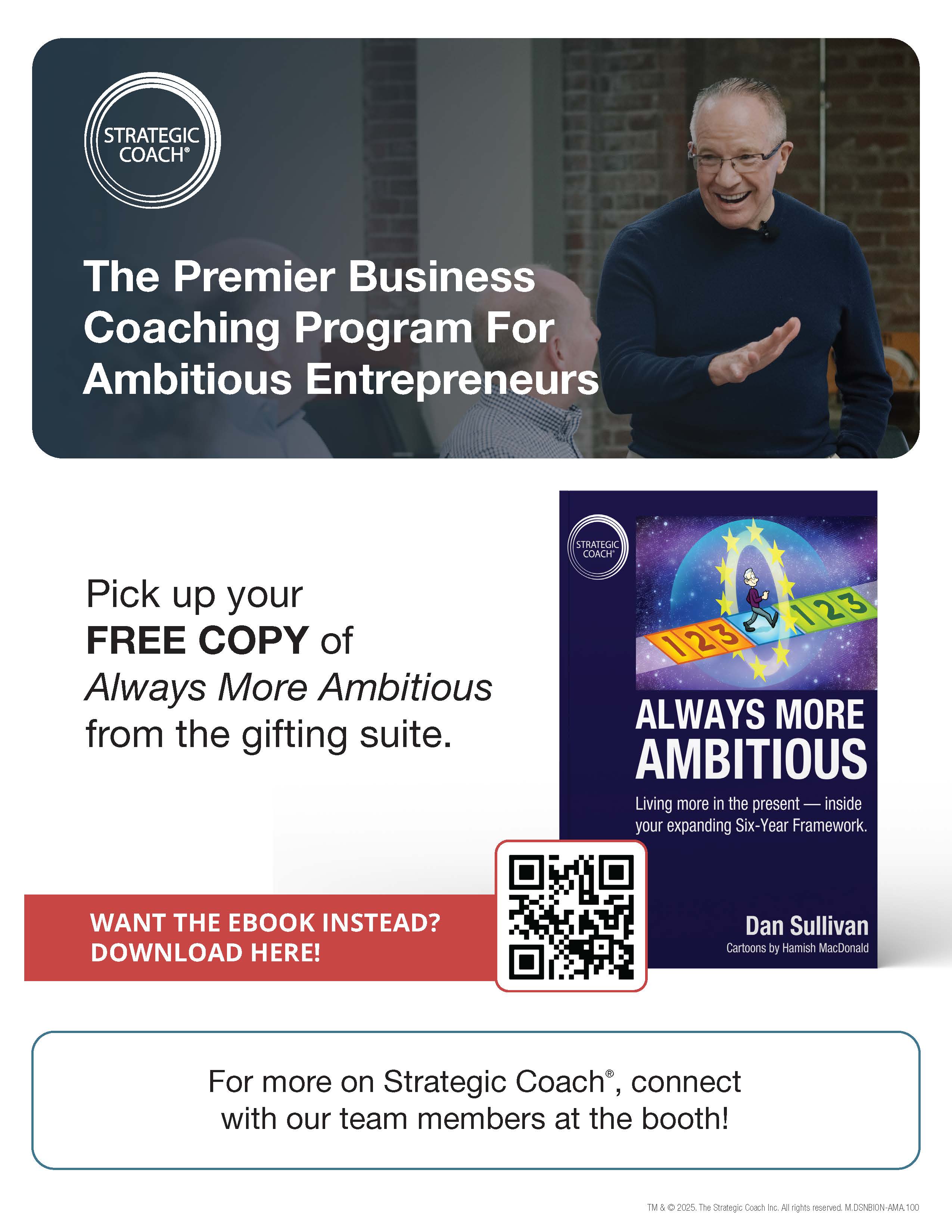 Run by entrepreneurs for entrepreneurs, Strategic Coach® is the recognized leader worldwide in entrepreneurial coaching. For over 30 years, we’ve worked with more than 20,000 successful business owners from around the globe to help them achieve faster growth, greater profits, and an exceptional quality of life. All that we’ve learned has evolved into a complete, proven support system to help entrepreneurs transform their businesses and achieve new levels of freedom and success. We offer business coaching programs that are designed to step up progress and accelerate results in entrepreneurs' business and personal lives. Our global community of successful entrepreneurs, our highly experienced coaches, our arsenal of proprietary tools, and our deep-dive strategy sessions are the cornerstones of our programs’ success.